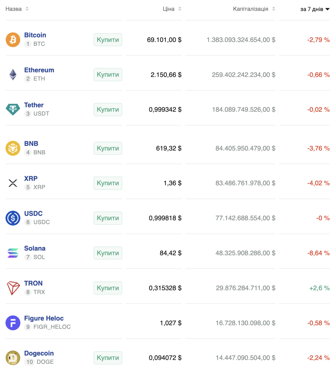В настоящее время актив торгуется в районе $69 101, демонстрируя недельное проседание на 2,79%.