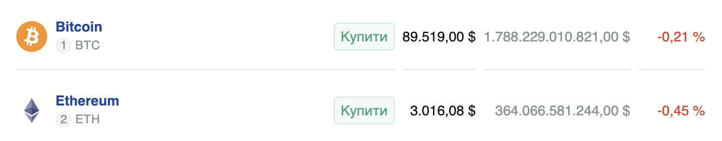 На момент написания, согласно интерактивной карте Министерства финансов, цифровое золото торгуется по цене $89 519, эфир — по $3 011.