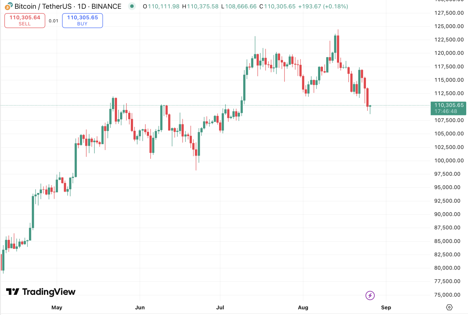 После достижения рекордного максимума более 124 000 долл. США 14 августа Биткойн продолжил коррекцию, и 26 августа его цена упала до 108 долларов США. Об этом сообщают об инкрифровании.