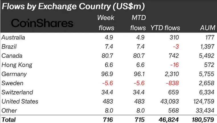 Согласно последнему отчету CoinShares, криптовалютные инвестиционные продукты зафиксировали сильный приток средств, привлекая $716 млн за неделю с 28 ноября по 6 декабря. Это свидетельствует о положительной динамике, которая сохраняется вторую неделю подряд.