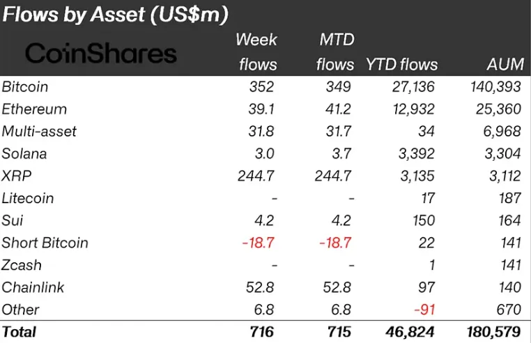 Криптофонды привлекли $716 миллионов: настроения рынка значительно улучшились