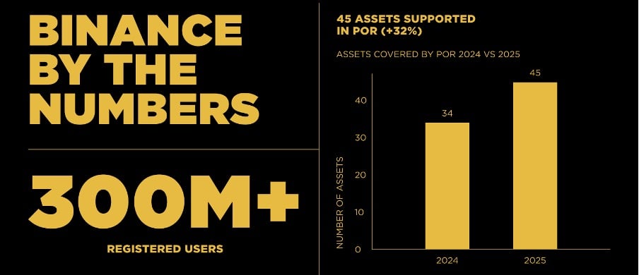 Согласно отчету, в 2025 году Binance провела 1026 офлайн- и онлайн-мероприятий с более чем 3,7 миллионами участников. Подробности приводятся отдельно: 553 офлайн-встречи и мероприятия собрали почти 520 000 участников, 473 виртуальных мероприятия — 3,2 млн участников; Социальные аккаунты Binance достигли 25 миллионов подписчиков.