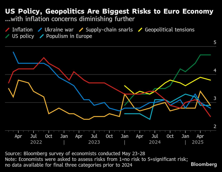 США и геополитика являются самым большим риском для европейской экономики … с еще меньшими опасениями по поводу инфляции