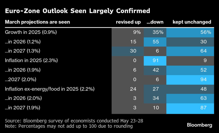 Аналитики в опросе Bloomberg предсказывают, что ЕЦБ в значительной степени подтвердит свои предыдущие прогнозы, даже если экономический фон изменился в основном из -за усилий Трампа по перестройке мировой торговли.