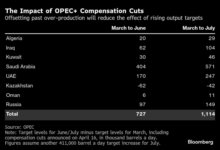 Влияние сокращений компенсации OPEC+ | Компенсация прошлого перепроизводства уменьшит влияние растущих целей производства