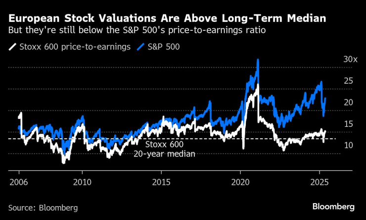 Конечно, на 8,3% в этом году пород STOXX 600 оценок. По словам Bloomberg, эталон в настоящее время торгуется примерно в 14,6 раза превышает прибыль, которая составляет более 20-летней медианы 13,5 раза. Но это все еще ниже, чем соотношение цены/прибыли S & P 500, что почти 22 раза.