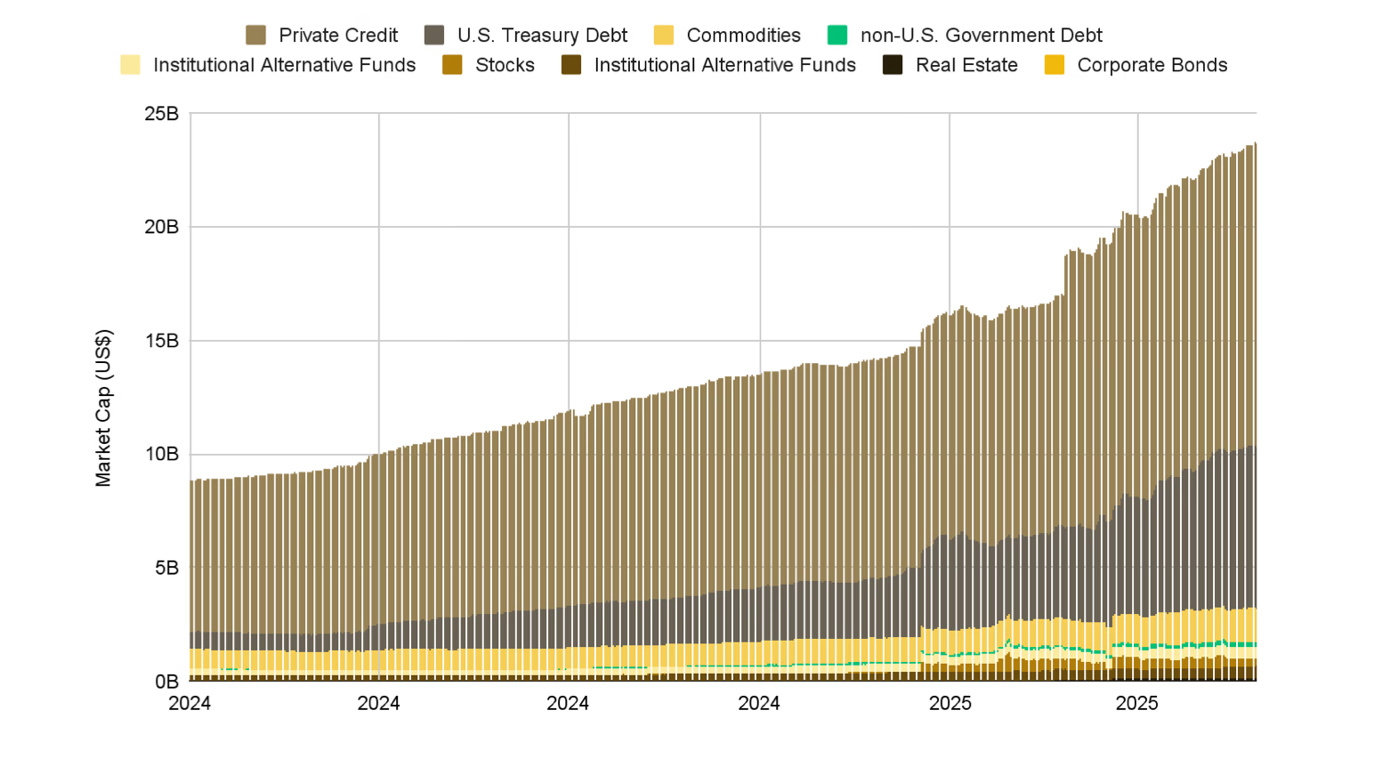 В 2025 году рынок токенизированных реальных активов (RWA) продемонстрировал взрывной рост. По данным Binance Research, ее общая капитализация выросла на 260%, с $8,6 млрд в начале года до более чем $23 млрд осенью, и охватывает более 185 видов активов.