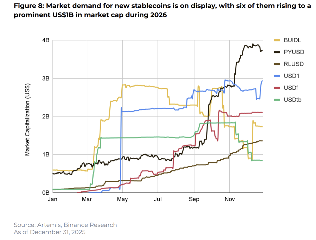В 2025 году отметку рыночной капитализации в $1 млрд преодолели сразу шесть новых стейблкоинов, однако траектории роста различались в зависимости от аудитории и сценариев использования.
