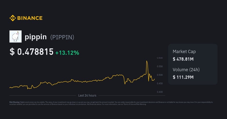 - Pippin ($PIPPIN) — рыночная капитализация в 450 миллионов долларов → ключевой катализатор: вирусный импульс и большие объемы → ожидаемый рост: 2−5x
