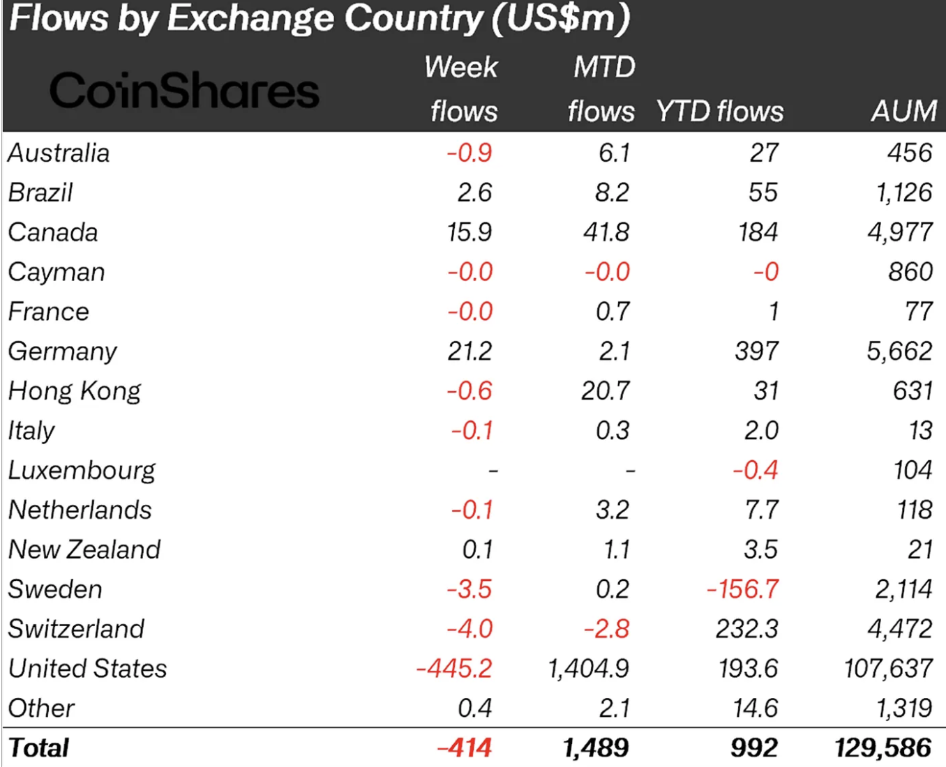 Основной удар пришелся на американский рынок, где отток составил $445 млн. Швейцария также зафиксировала незначительные потери в $4 млн.