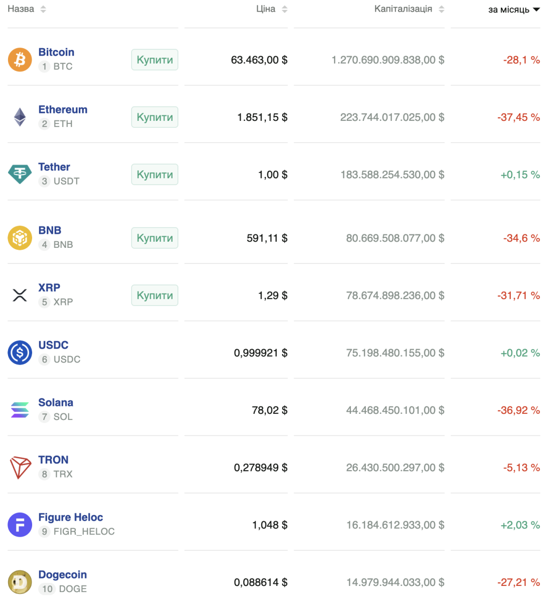 За месяц первая криптовалюта выручила 28%. При этом больше всего обрушились: