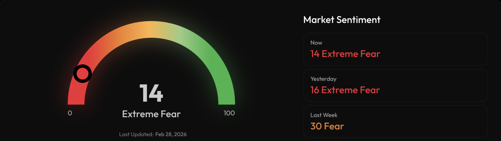 Индекс страха и алчности снизился на два пункта по сравнению с показателем от 27 февраля. Текущее значение сигнализирует о доминировании пессимистических настроений на рынке и склонности инвесторов к продаже активов.