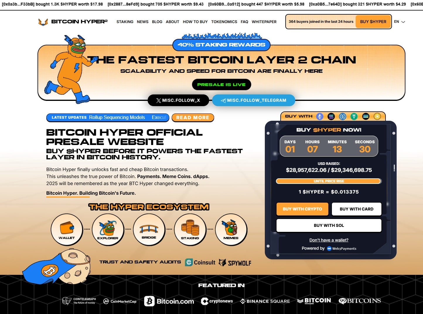 На момент написания токена Bitcoin Hyper находится на стадии предпродажи. Стоимость токена составляет примерно $0,013375, а общая сумма собранных средств превышает $29 миллионов. Эти показатели подтверждают высокий интерес аудитории.