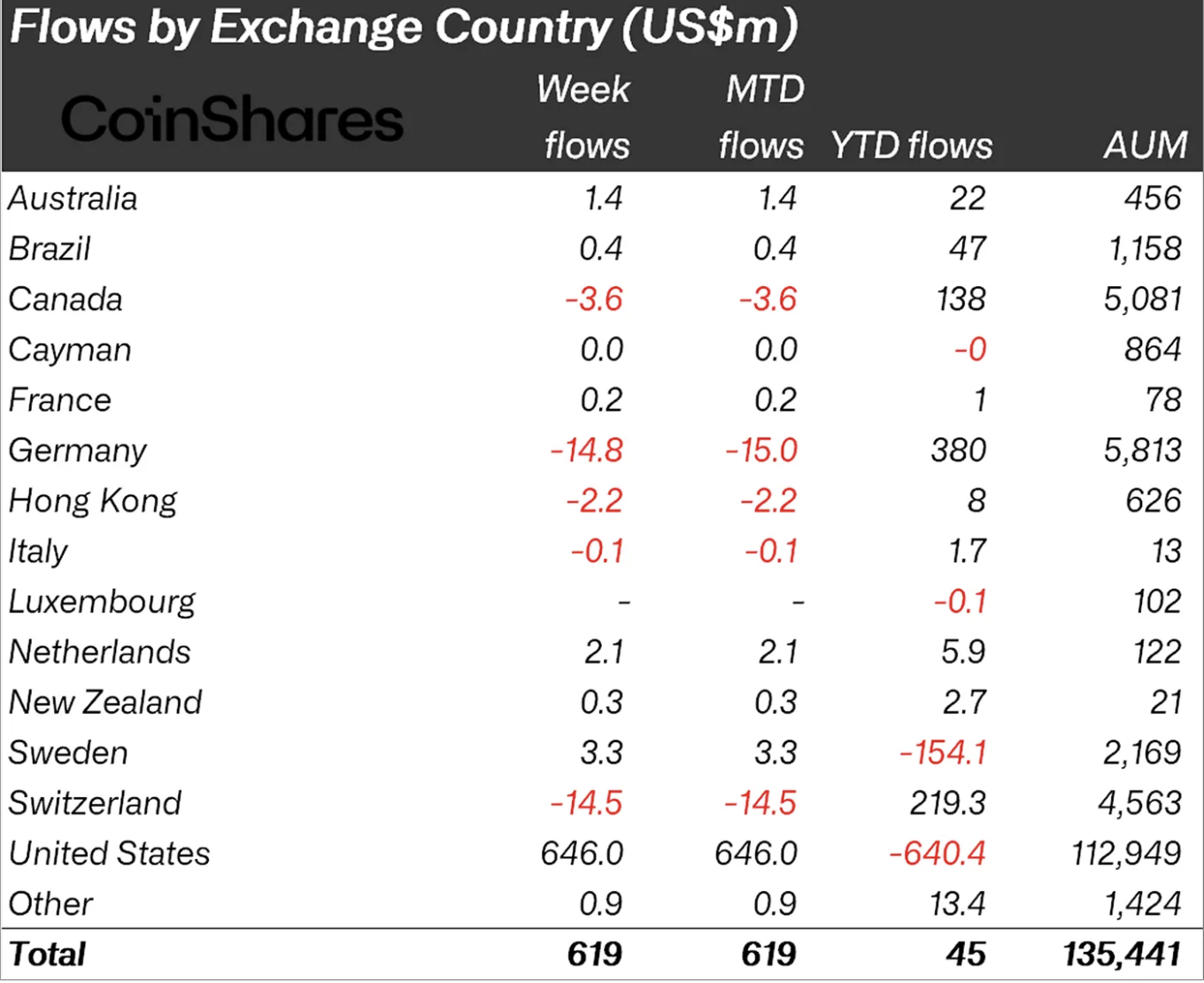 - Канада: отток в $3,6 млн.