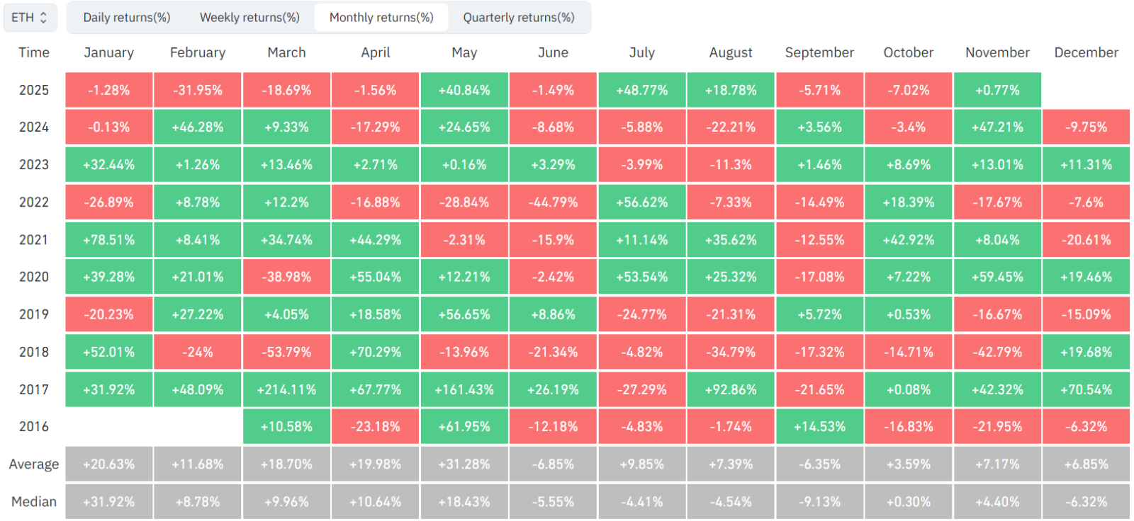 Октябрь 2025 года был плохим месяцем для криптовалют с крупнейшей капитализацией: Биткойн и Эфириум завершили его падением. По данным CoinGlass, цена Биткойна снизилась на 3,7%, а цена Ethereum снизилась на 7%.