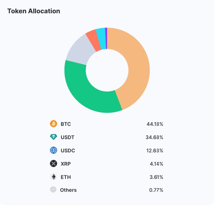 Такое распределение отображает фокус на высоколиквидных и широко признанных цифровых активах, где основную часть резервов составляют Bitcoin и Стэйблкоины.