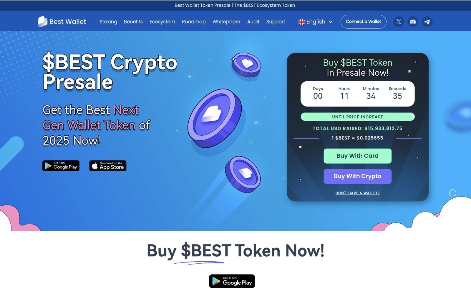 Теперь $ Лучше всего можно получить только в рамках Presayl. Это предварительная продажа токена до того, как он будет выпущен на бирже. Участники покупают $ Best по фиксированной стоимости — 0,025655 долл. США, пока он не будет торговаться на открытом рынке. На момент публикации было собрано более 15,9 млн. Долл. США, и интерес к проекту продолжает расти. Одной из основных причин этого является истинная выгода от токена, а не только спекулятивный интерес. Покупатели не только ждут увеличения стоимости, но и получают доступ к функциям, которые действительно пригодится.