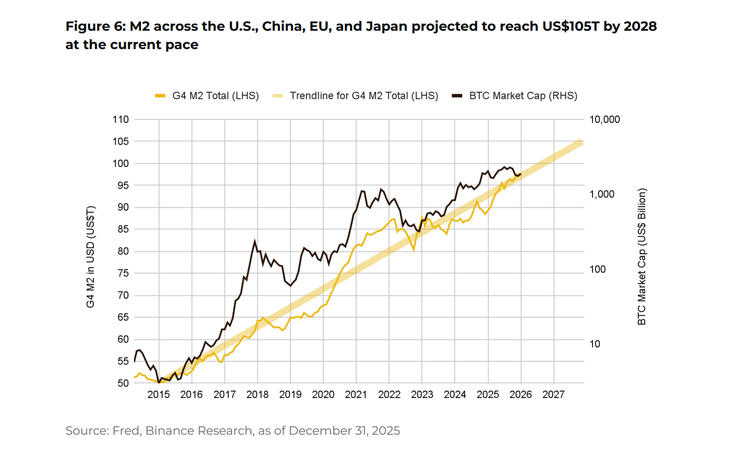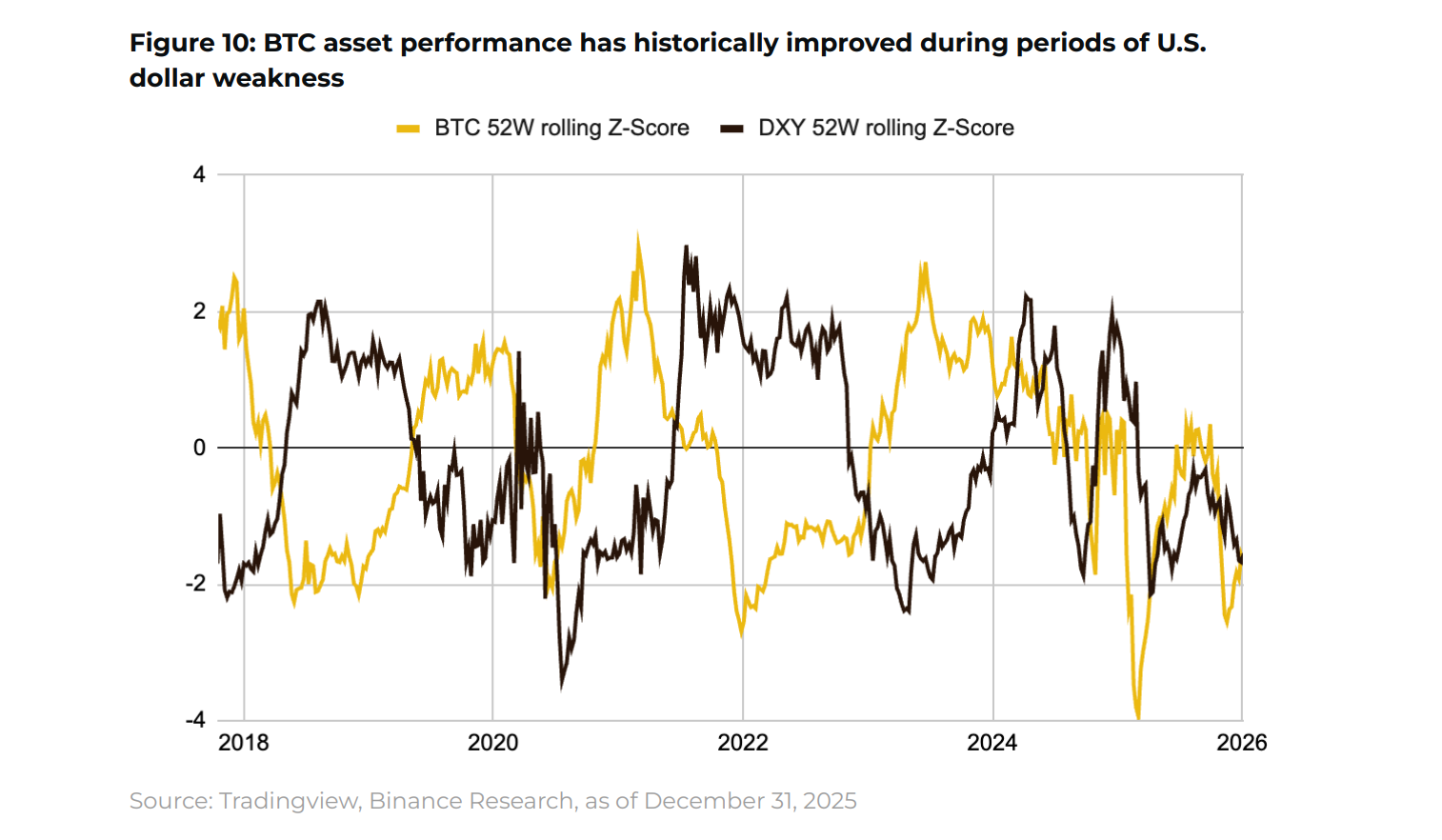 В отчете 2025 год описывается как период «тумана данных» — высокой неопределенности и резкого изменения рисков. На 2026 год команда определяет сценарий «политического триумвирата» — сочетание бюджетного стимулирования, смягчения денежно-кредитной политики и дерегуляции — как потенциальную трехкомпонентную поддержку рисковых активов.