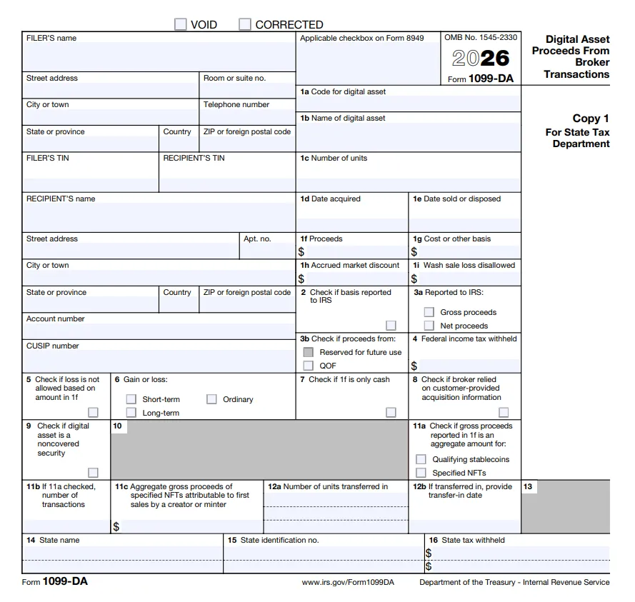 Со следующего календарного года вводится обязательная декларация 1099-DA (Доходы от цифровых активов, полученные от брокерских соглашений).
