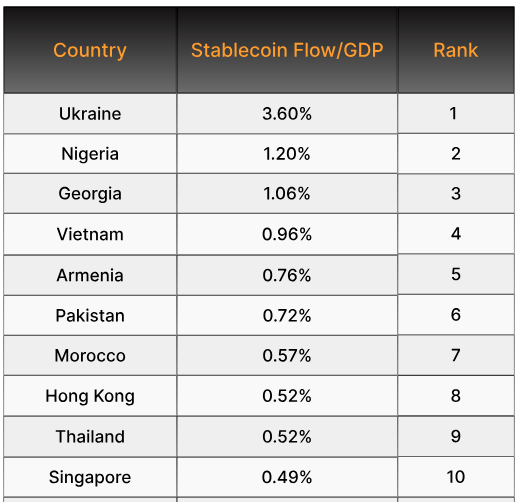В категории проникновения стейблкоинов Украина обогнала такие страны, как Нигерия и Грузия, которые традиционно считаются лидерами по использованию криптоактивов из-за слабости национальных валют.