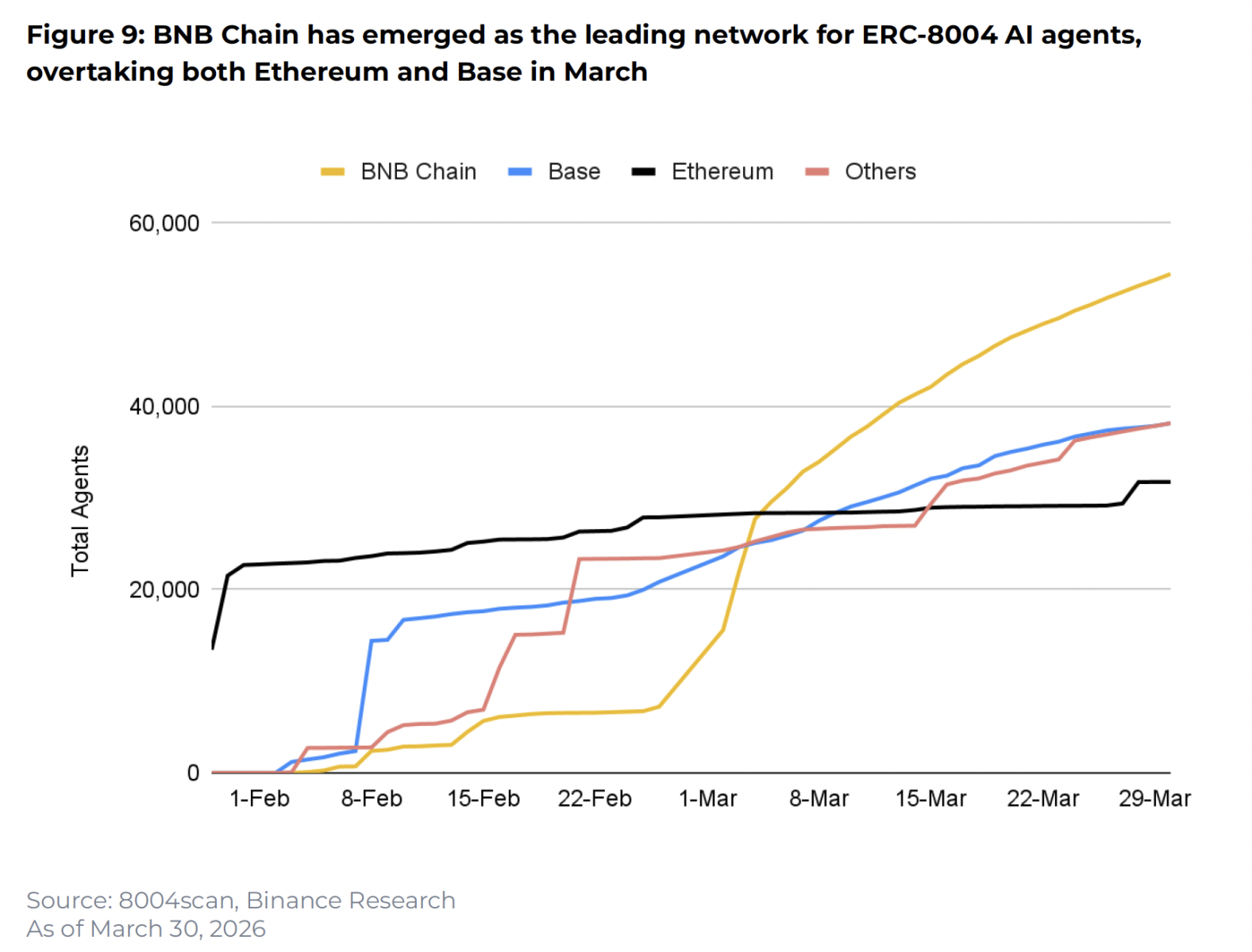 В середине марта суточный объем сделок на децентрализованных биржах (DEX), сгенерированных агентами в BNB Chain, в пике достиг $18,1 млн. Следующий ключевой показатель для этого рынка — уже не количество агентов, а то, начнут ли они создавать реальную экономическую активность ончейн.